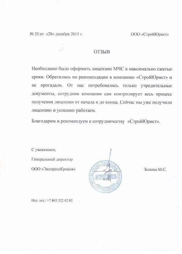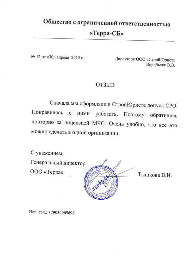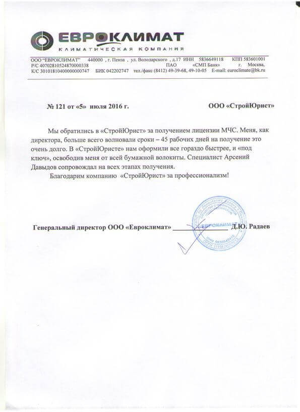 Отзывы клиентов "СтройЮрист" по лицензированию МЧС в Вологде