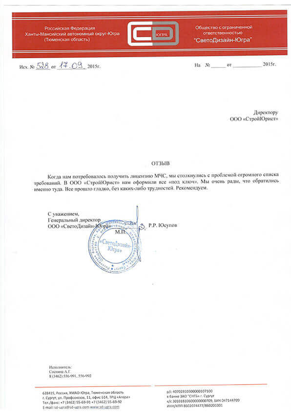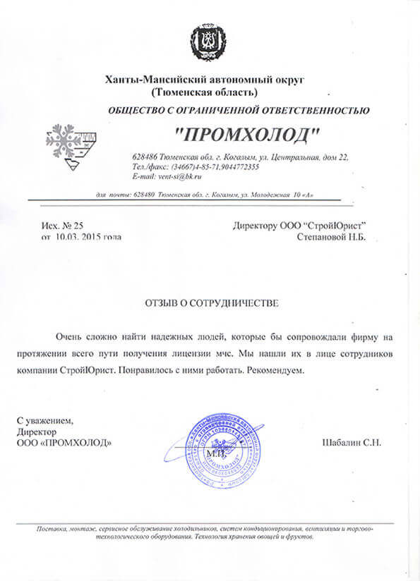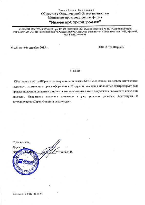 Отзывы клиентов "СтройЮрист" по лицензированию МЧС в Вологде